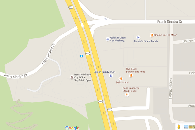 Frank Sinatra and Hwy 111 in Rancho Mirage. Across for the large fountain falls.